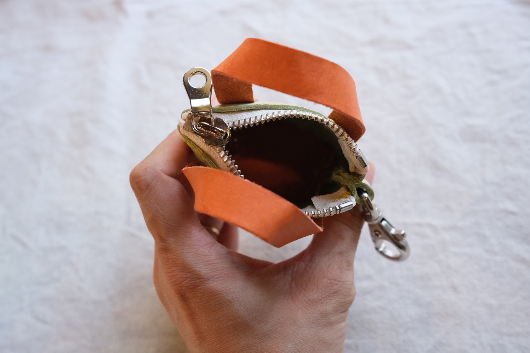 牛一頭一頭個性がある通り、革本来のキズ やシワ、色のムラなどの個体差がある場合があります。また、水に弱いことも特性の一つのため、服などへの色移りにはご注意下さい。