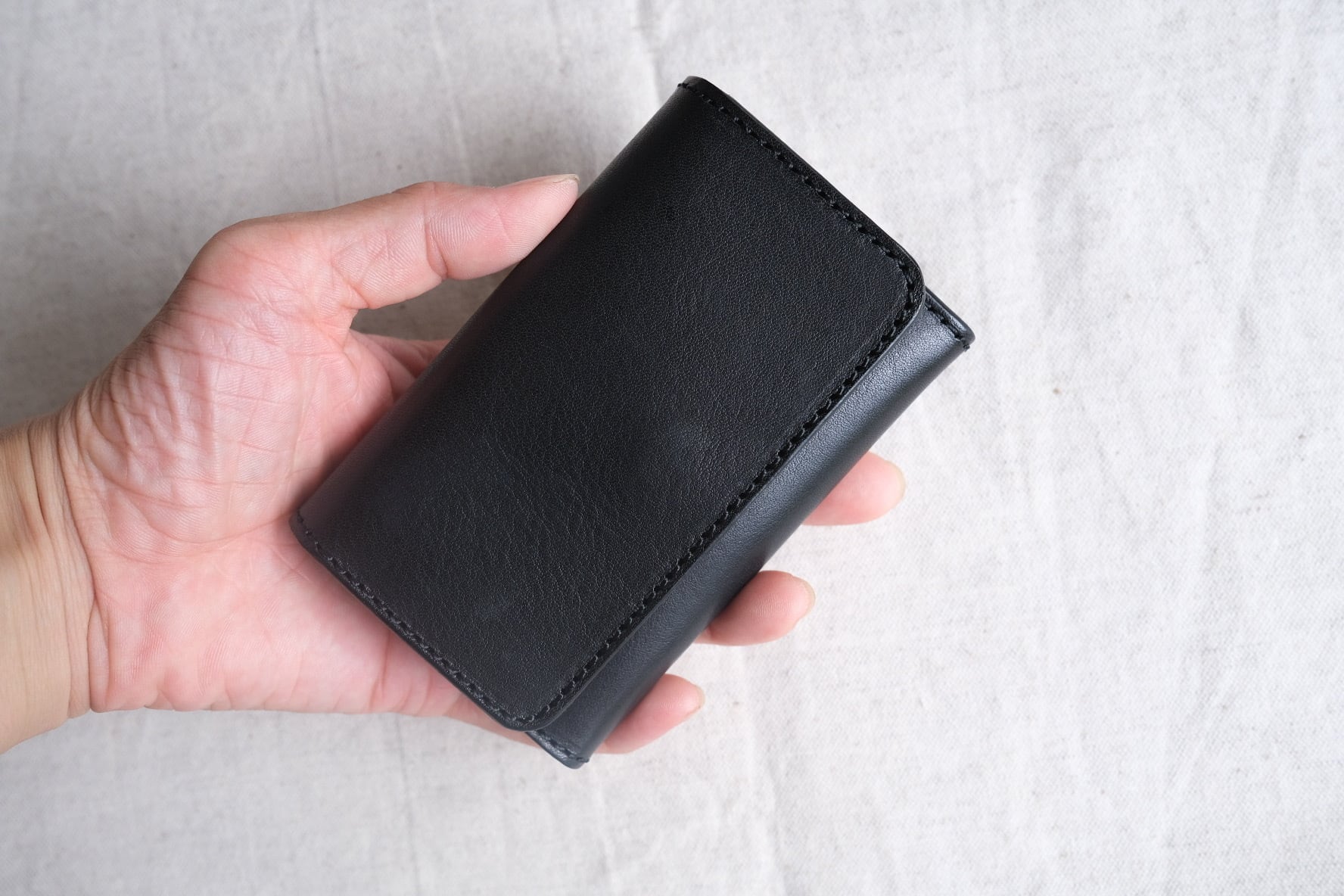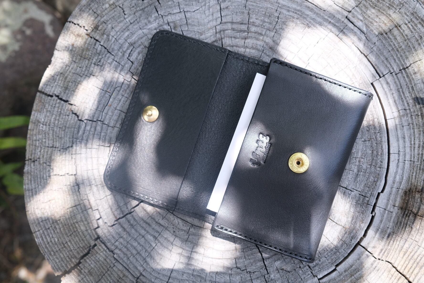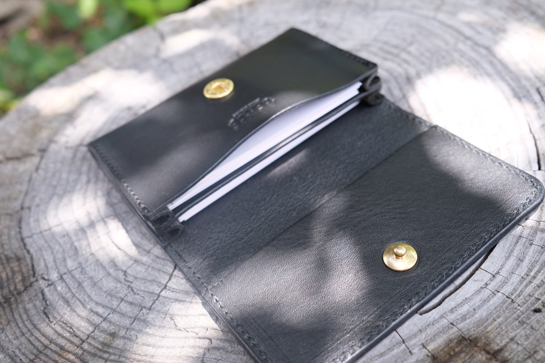 定番アイテムのseparate business card caseのホック部分を変更したものです。よりシンプルなデザインのため、男女問わず使いやすいのではと製作しました。