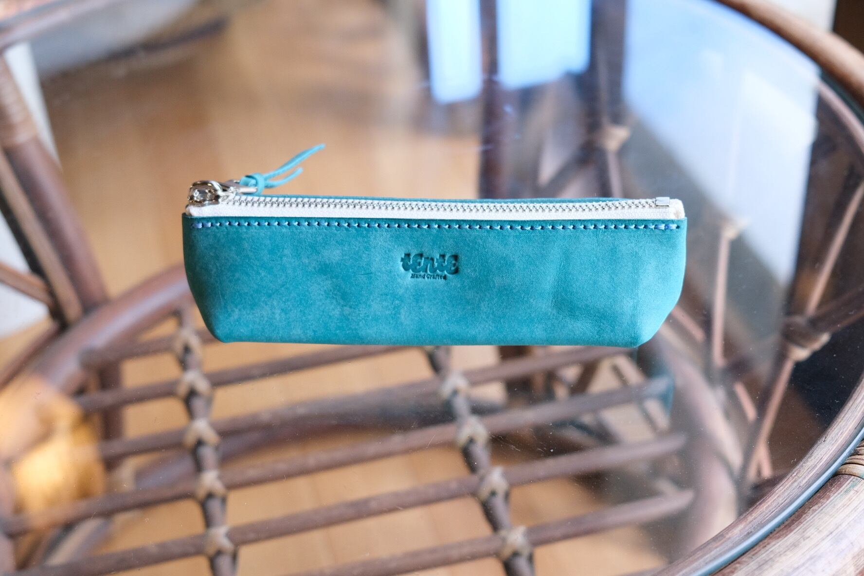 TENTEで使用している革は、イタリアのサンタクローチェにある老舗のタンナーが1枚ずつ手作業でなめしたバケッタ製法で作られた革です。食肉加工の過程からうまれている原皮を使用しており、オイルをたっぷり含んだ植物タンニンなめしの革は、使い込むほどに色艶が美しく、経年変化をお楽しみいただける革になっています。
