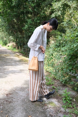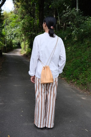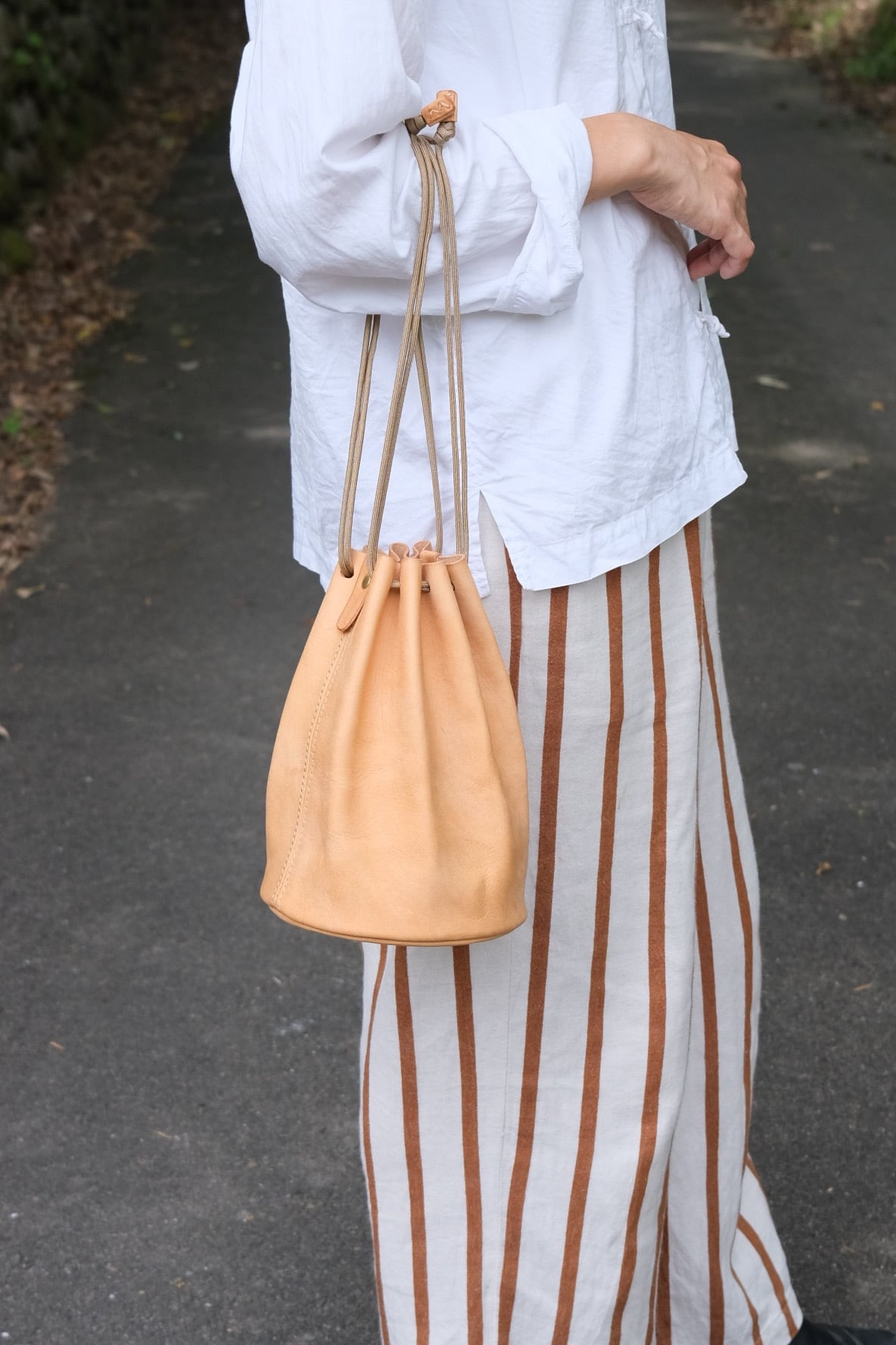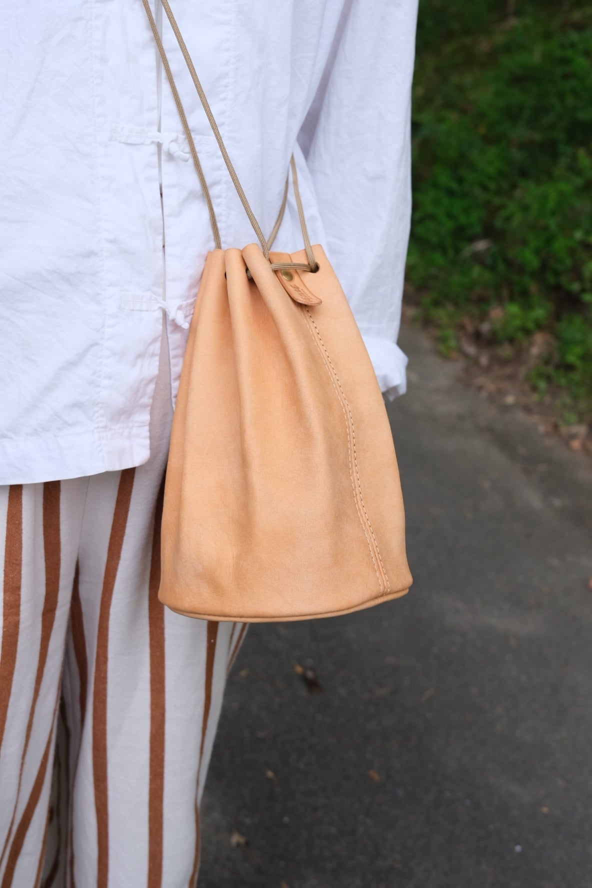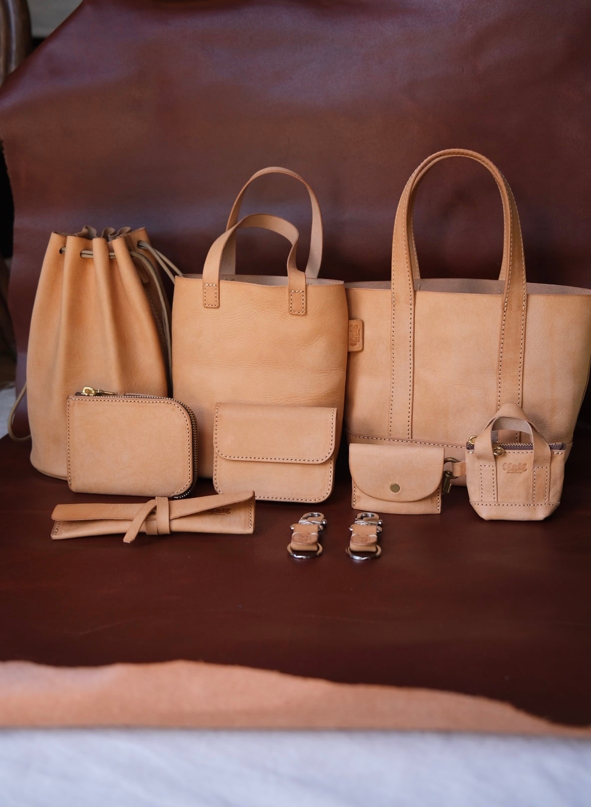 TENTEで使用している革は、イタリアのサンタクローチェにある老舗のタンナーが1枚ずつ手作業でなめしたバケッタ製法で作られた革です。食肉加工の過程からうまれている原皮を使用しており、オイルをたっぷり含んだ植物タンニンなめしの革は、使い込むほどに色艶が美しく、経年変化をお楽しみいただける革になっています。