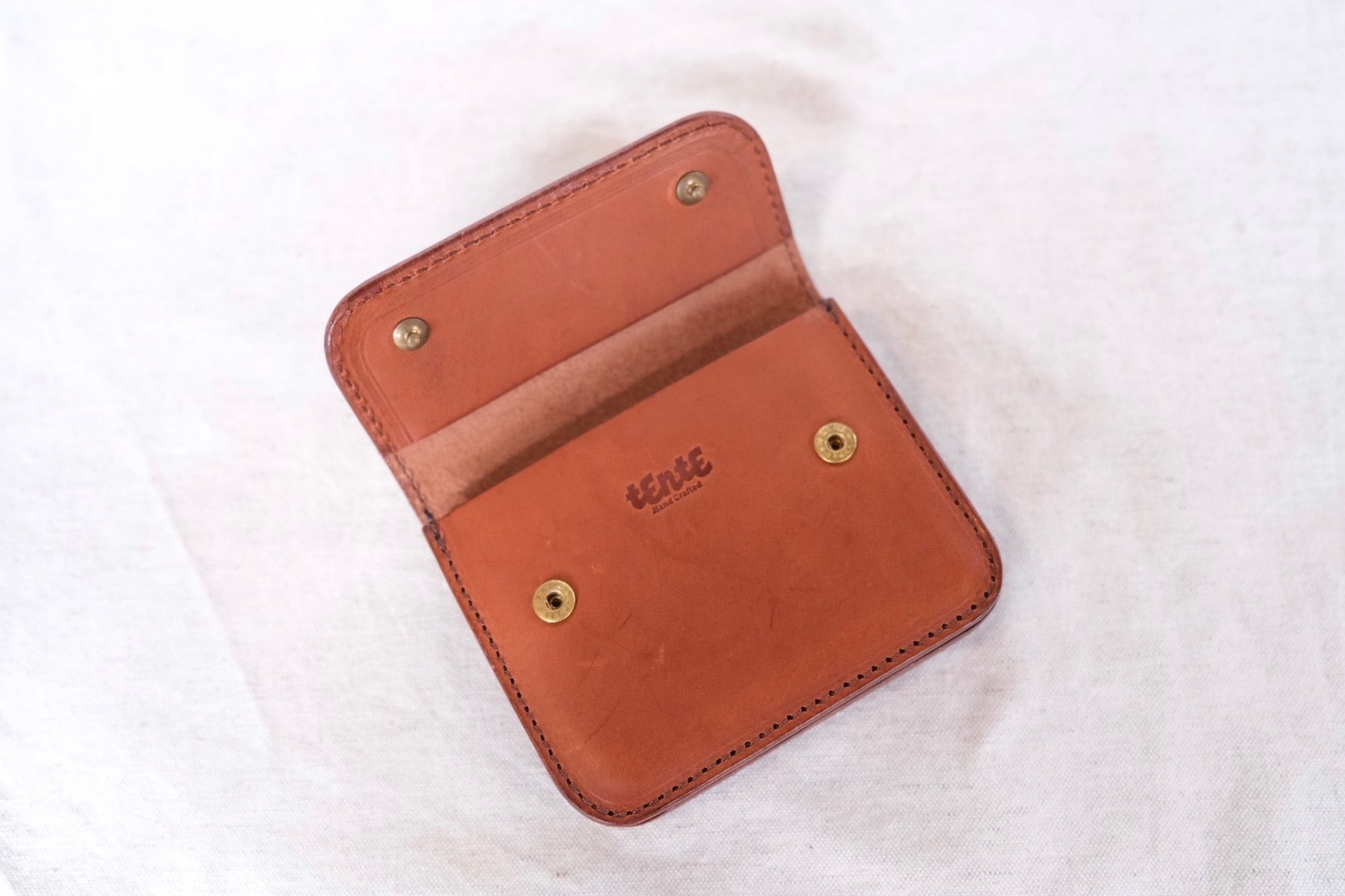 TENTEで使用している革は、イタリアのサンタクローチェにある老舗のタンナーが1枚ずつ手作業でなめしたバケッタ製法で作られた革です。食肉加工の過程からうまれている原皮を使用しており、オイルをたっぷり含んだ植物タンニンなめしの革は、使い込むほどに色艶が美しく、経年変化をお楽しみいただける革になっています。