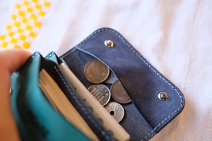 小銭はフラップ裏のポケットに流して使うと取り出しやすいです。