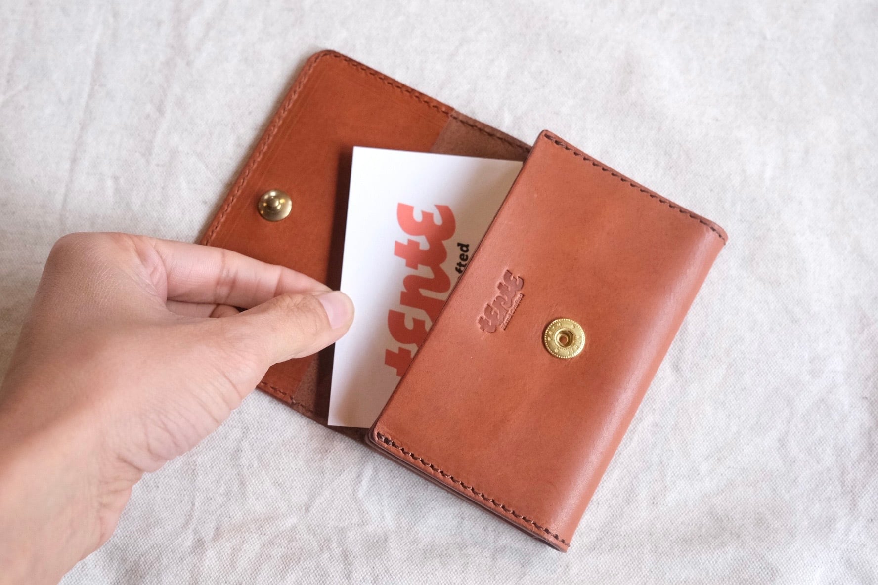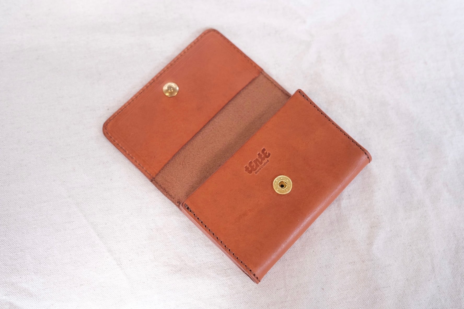 TENTEで使用している革は、イタリアのサンタクローチェにある老舗のタンナーが1枚ずつ手作業でなめしたバケッタ製法で作られた革です。食肉加工の過程からうまれている原皮を使用しており、オイルをたっぷり含んだ植物タンニンなめしの革は、使い込むほどに色艶が美しく、経年変化をお楽しみいただける革になっています。