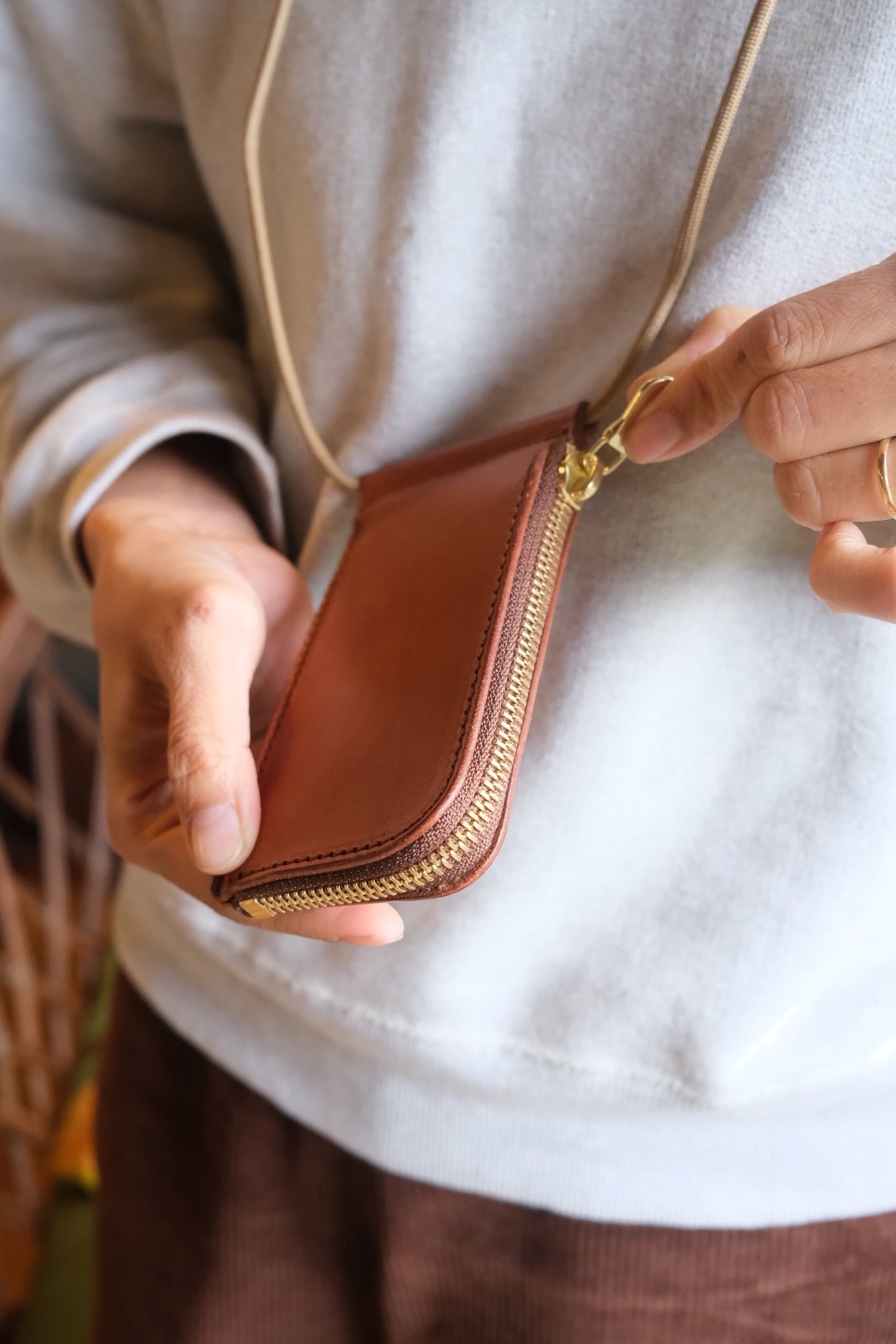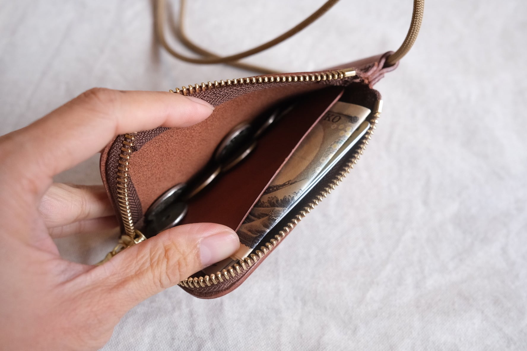 定番のzip card coin caseにループをつけて首から掛けられる仕様になっています。