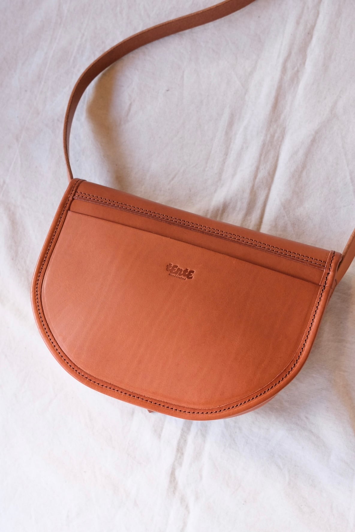 TENTEで使用している革は、イタリアのサンタクローチェにある老舗のタンナーが1枚ずつ手作業でなめしたバケッタ製法で作られた革です。食肉加工の過程からうまれている原皮を使用しており、オイルをたっぷり含んだ植物タンニンなめしの革は、使い込むほどに色艶が美しく、経年変化をお楽しみいただける革になっています。