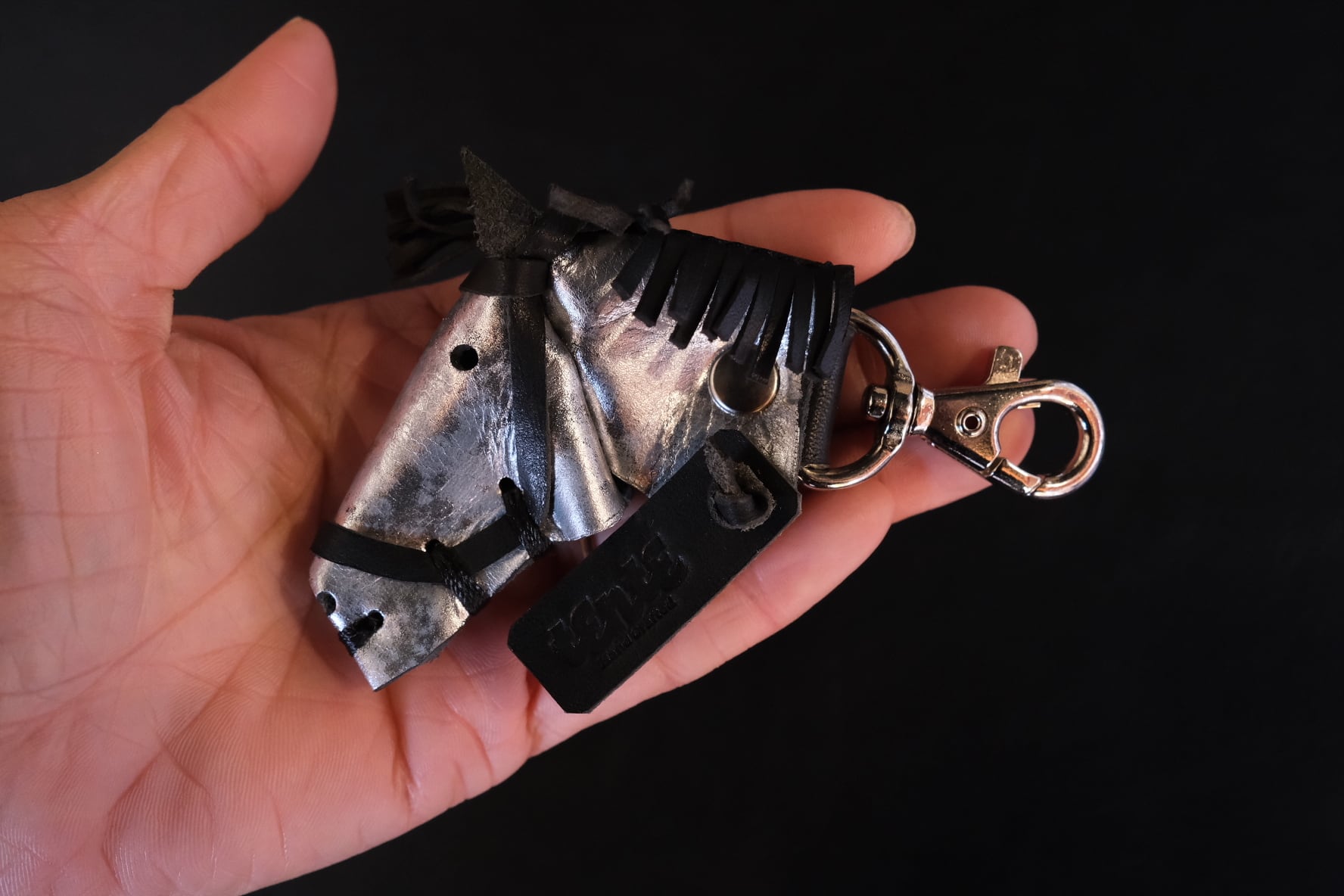 表面に箔を施したフルベジタブルタンニンレザー。下地カラーはブラック。