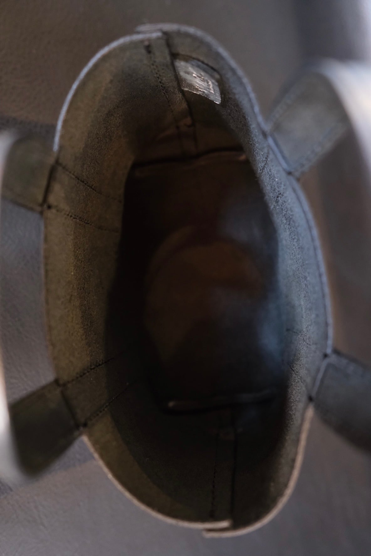 TENTEで使用している革は、イタリアのサンタクローチェにある老舗のタンナーが1枚ずつ手作業でなめしたバケッタ製法で作られた革です。食肉加工の過程からうまれている原皮を使用しており、オイルをたっぷり含んだ植物タンニンなめしの革は、使い込むほどに色艶が美しく、経年変化をお楽しみいただける革になっています。