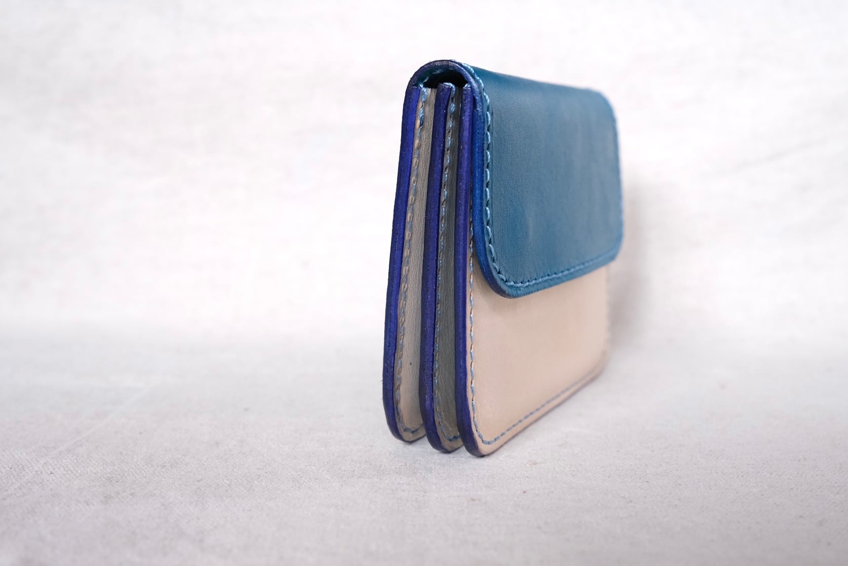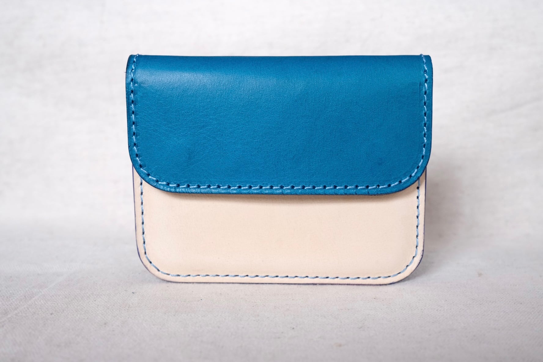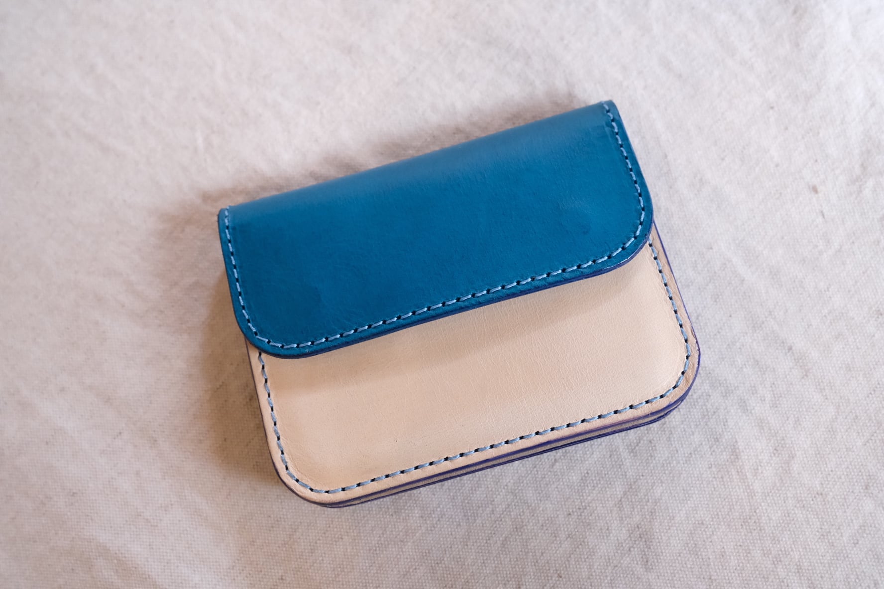 セルリアンブルー×オフホワイトの2 tone color。コバは青で仕上げました。