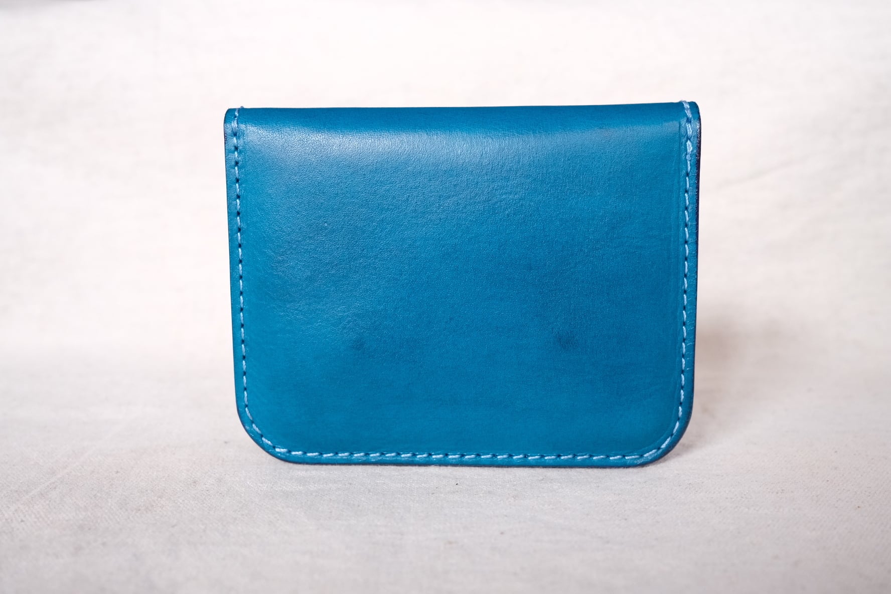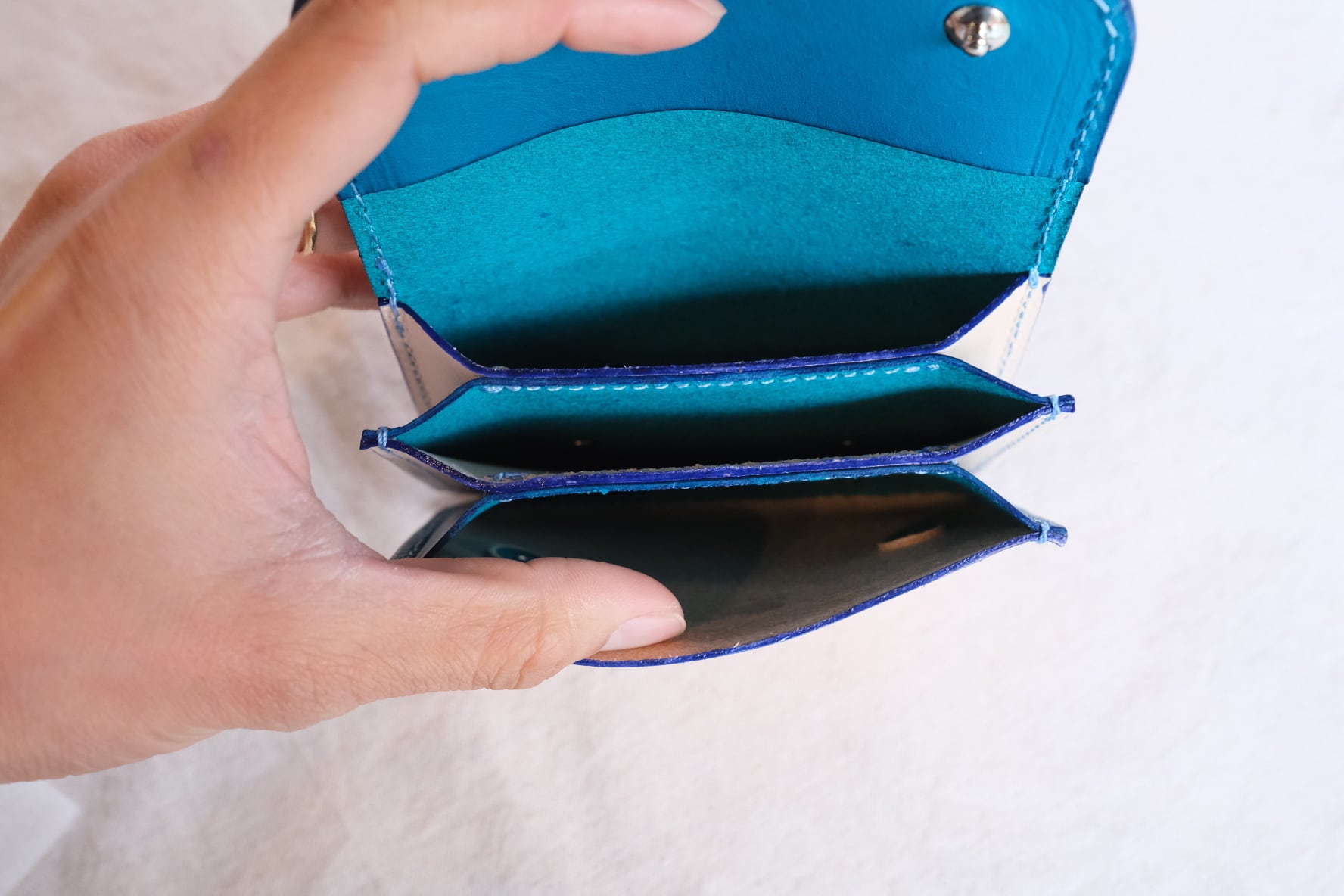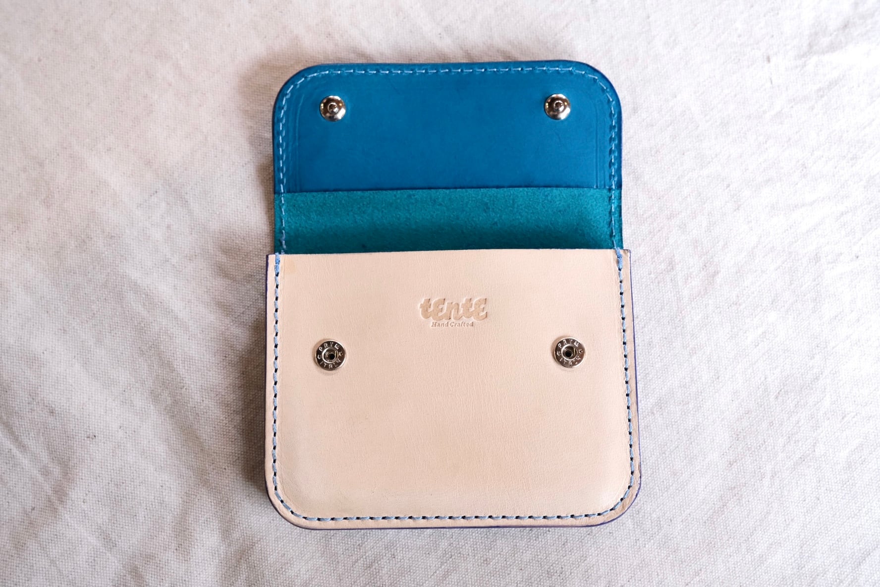 セルリアンブルー×オフホワイトの2 tone color。コバは青で仕上げました。