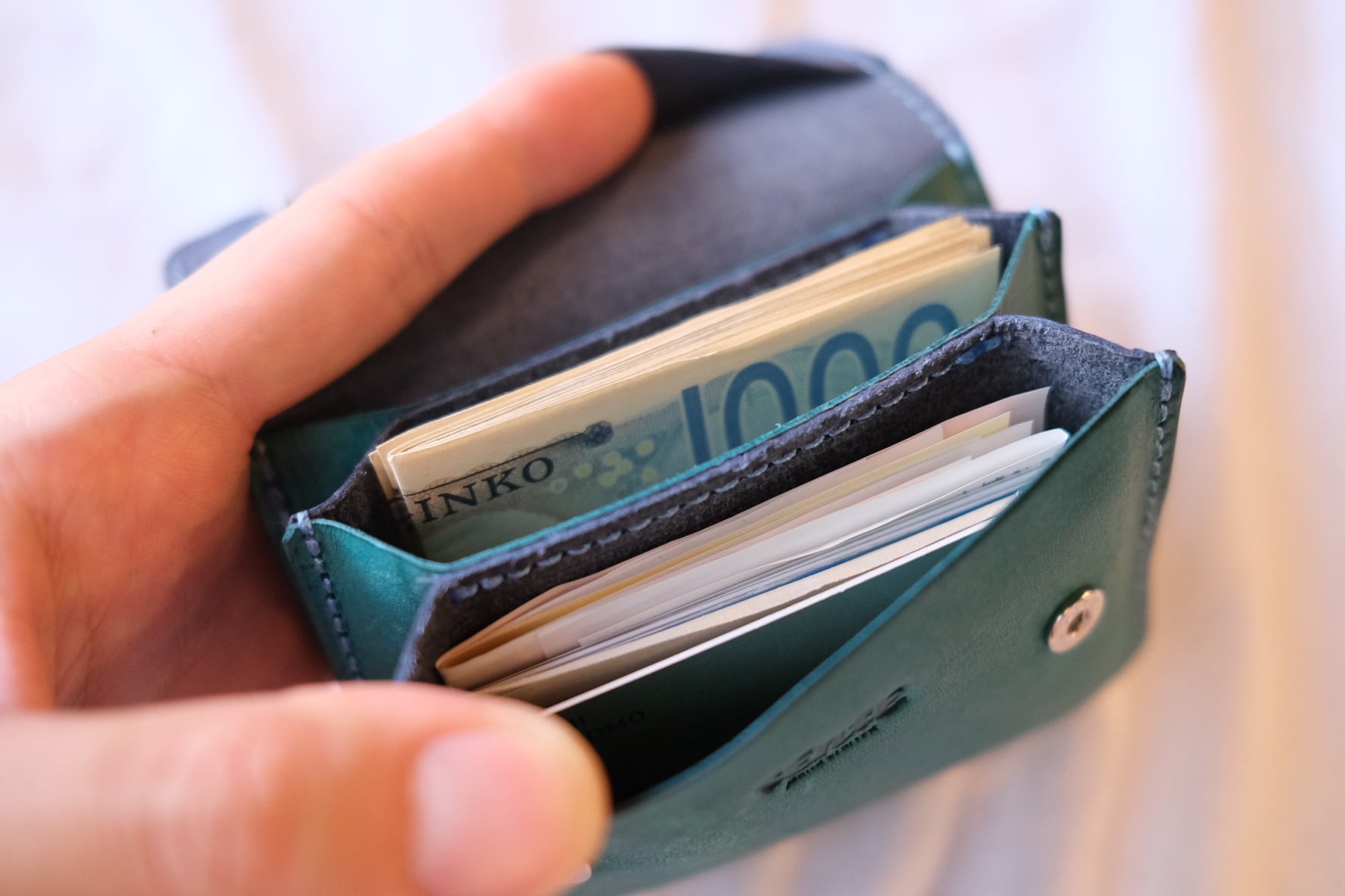 お札は二つ折りで収納。