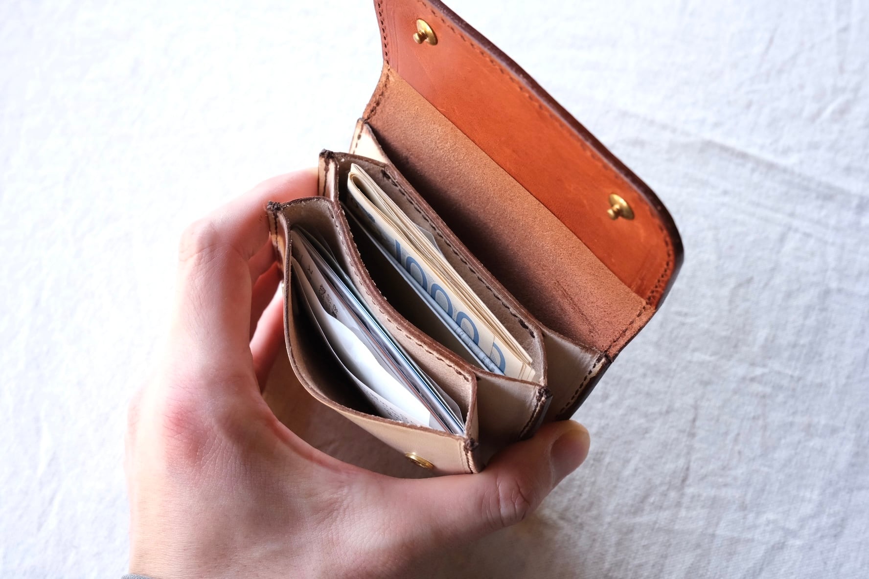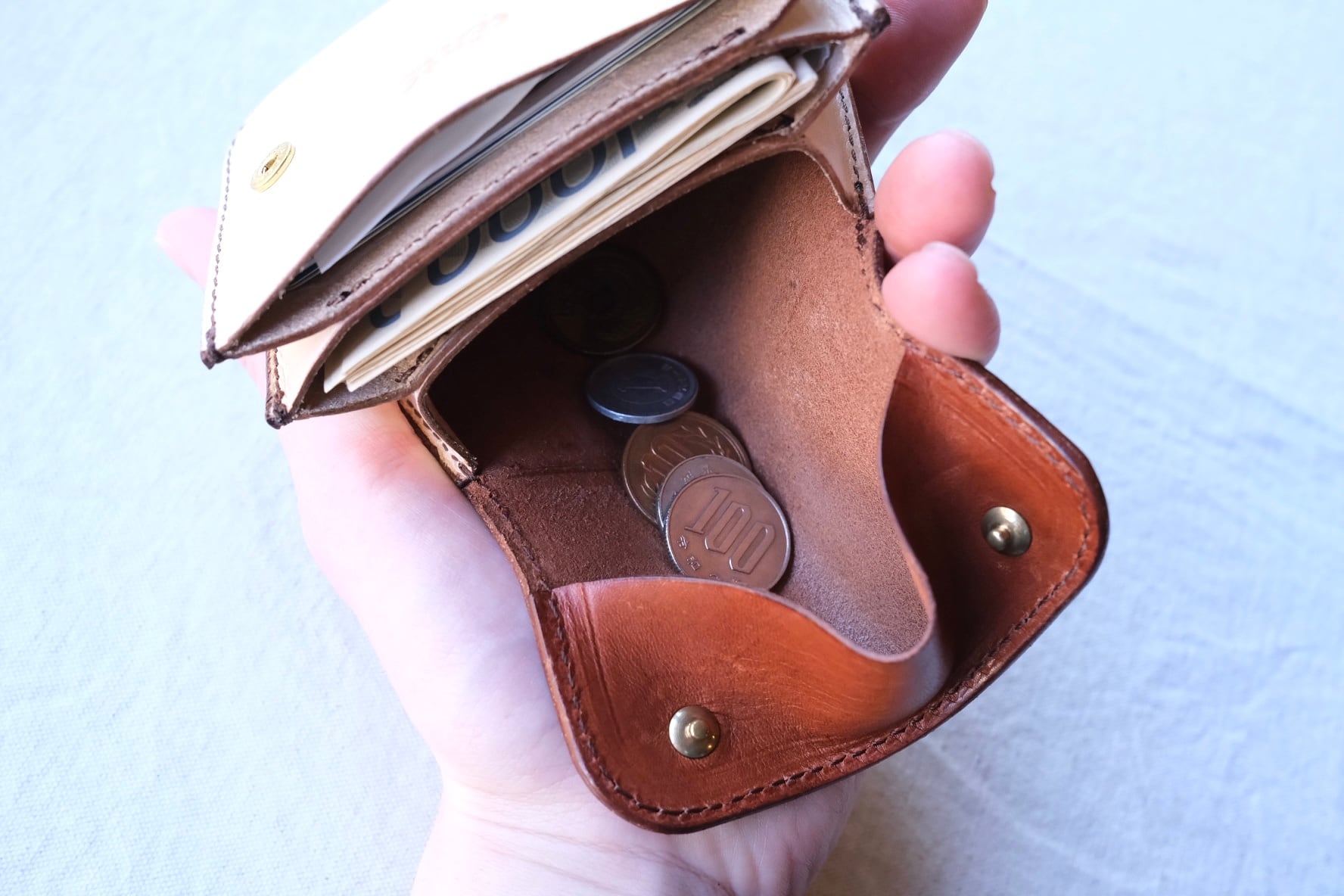 お札は二つ折りで収納。