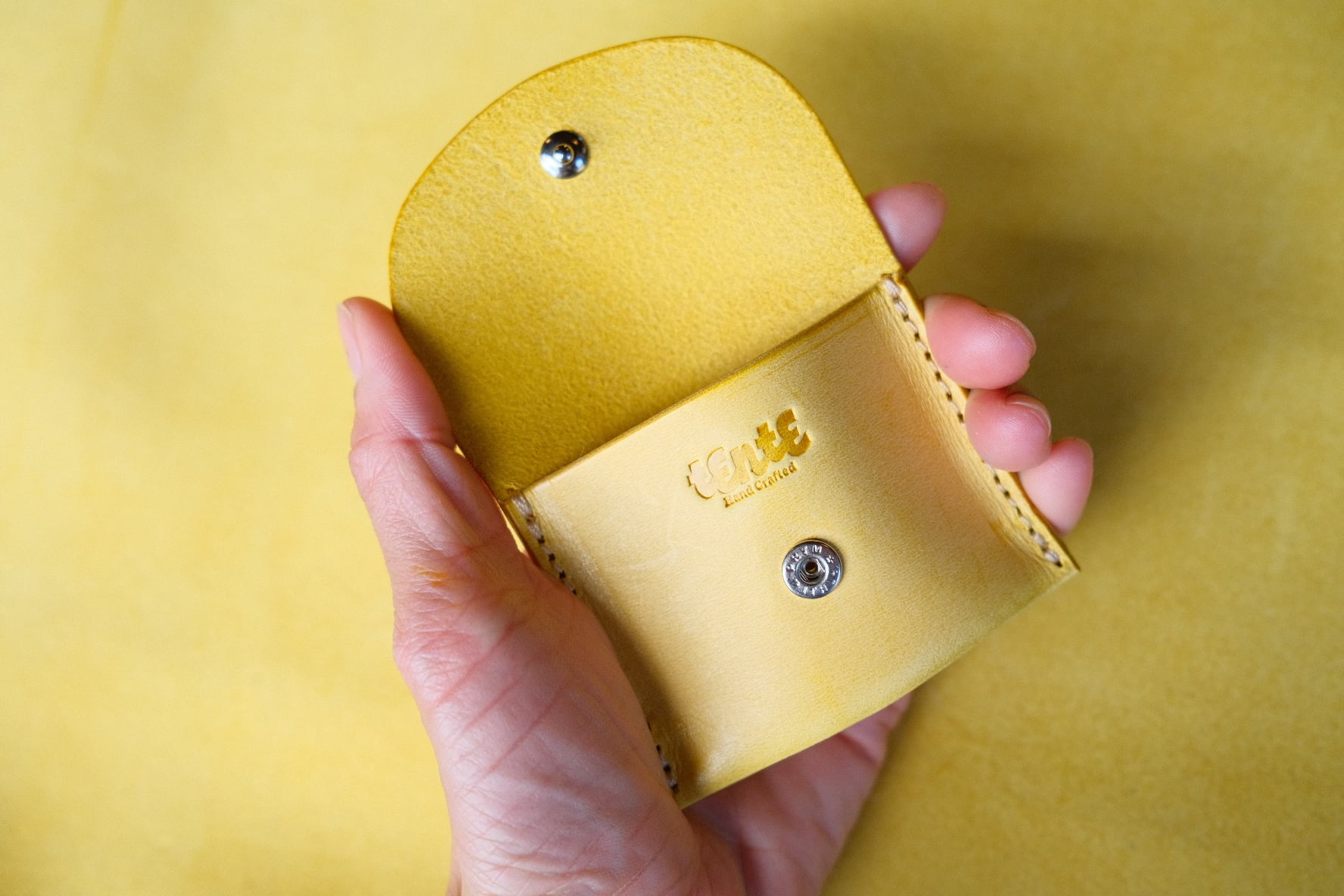 TENTEで使用している革は、イタリアのサンタクローチェにある老舗のタンナーが1枚ずつ手作業でなめしたバケッタ製法で作られた革です。食肉加工の過程からうまれている原皮を使用しており、オイルをたっぷり含んだ植物タンニンなめしの革は、使い込むほどに色艶が美しく、経年変化をお楽しみいただける革になっています。