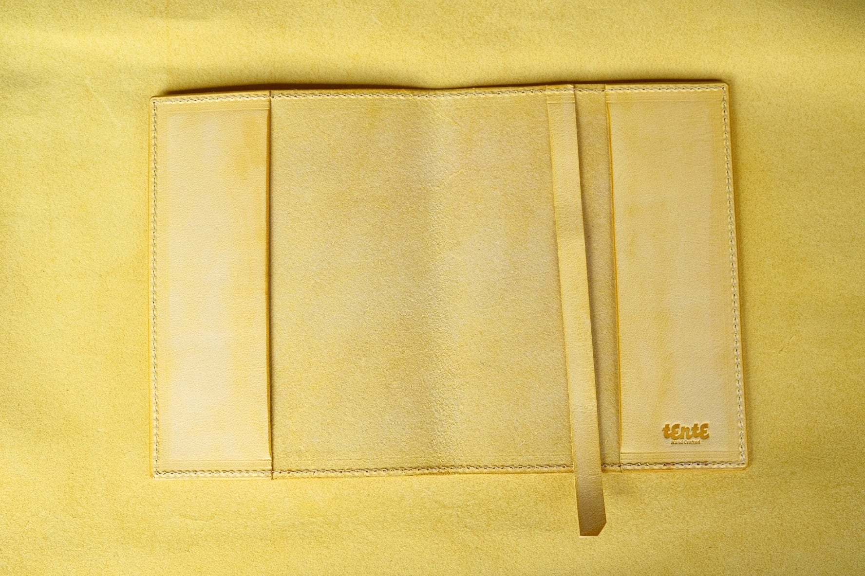 TENTEで使用している革は、イタリアのサンタクローチェにある老舗のタンナーが1枚ずつ手作業でなめしたバケッタ製法で作られた革です。食肉加工の過程からうまれている原皮を使用しており、オイルをたっぷり含んだ植物タンニンなめしの革は、使い込むほどに色艶が美しく、経年変化をお楽しみいただける革になっています。