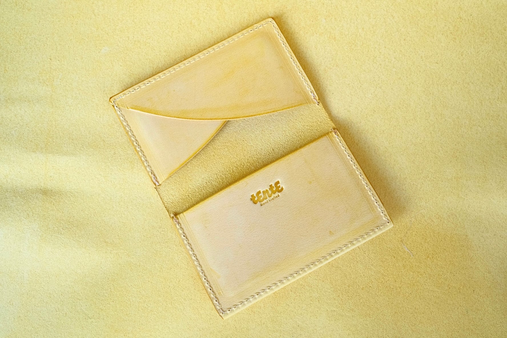 TENTEで使用している革は、イタリアのサンタクローチェにある老舗のタンナーが1枚ずつ手作業でなめしたバケッタ製法で作られた革です。食肉加工の過程からうまれている原皮を使用しており、オイルをたっぷり含んだ植物タンニンなめしの革は、使い込むほどに色艶が美しく、経年変化をお楽しみいただける革になっています。