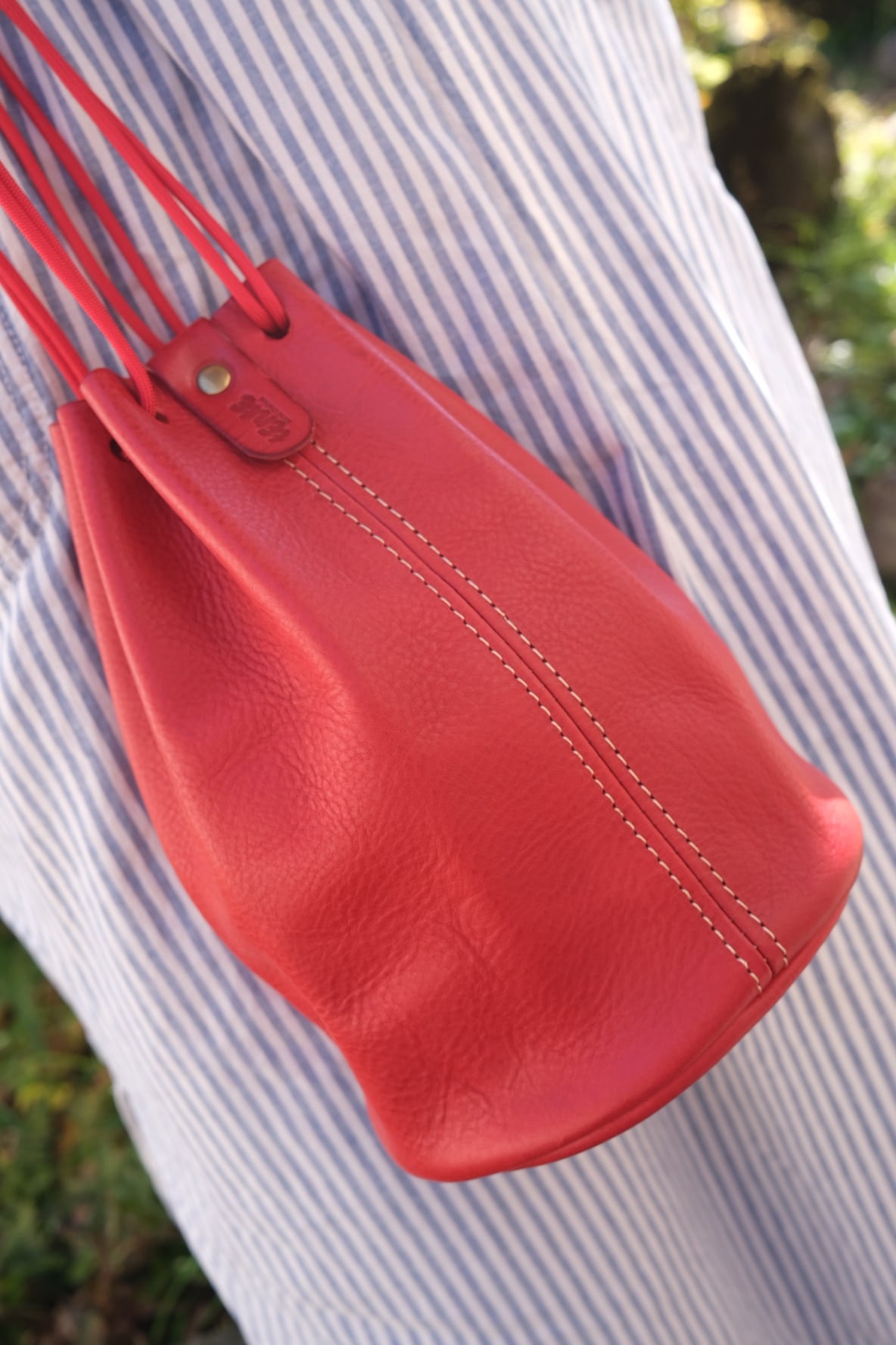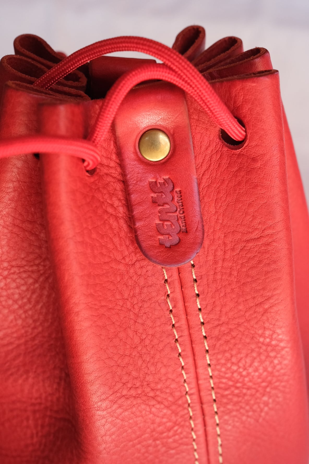 TENTEで使用している革は、イタリアのサンタクローチェにある老舗のタンナーが1枚ずつ手作業でなめしたバケッタ製法で作られた革です。食肉加工の過程からうまれている原皮を使用しており、オイルをたっぷり含んだ植物タンニンなめしの革は、使い込むほどに色艶が美しく、経年変化をお楽しみいただける革になっています。